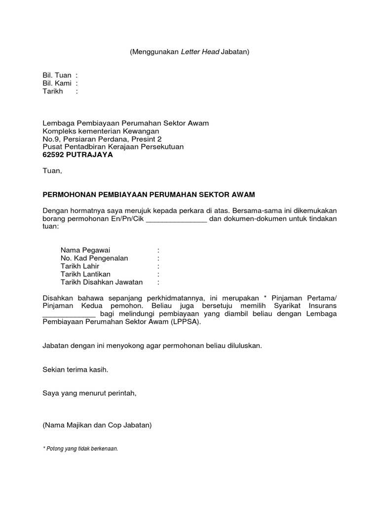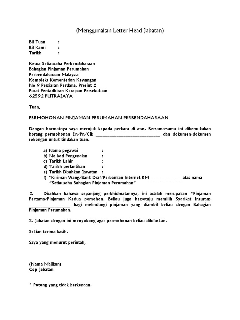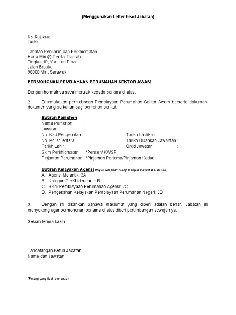 Contoh Surat Iringan Asal Ketua Jabatan Pinjaman Perumahan Otosection